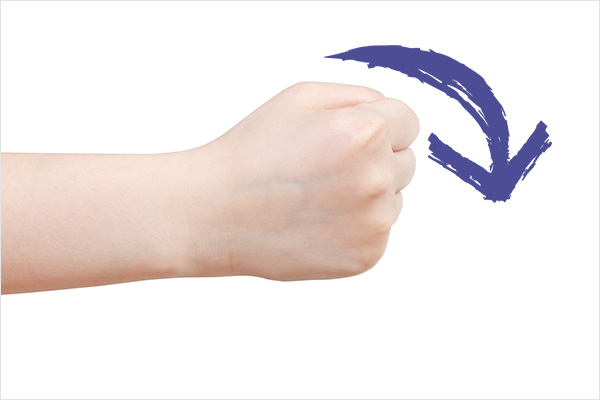 ▶ 엄지손가락을 말아 주먹을 쥐고 아래쪽으로 손목을 꺾을 때 쑤시는 통증이 나타난다면 협착성건염을 의심해봐야 합니다.